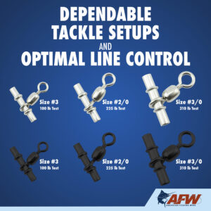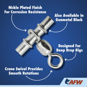 Sleeves Swivels are the perfect choice for deep drop rigs, spreader bars, daisy chains, and several other rigs. Simply slide it on your line and crimp it anywhere you want a drop and add your rig!