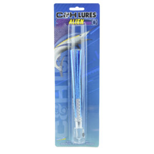 C&H, Alien Lure, Blue/Blue/Silver Mylar Skirt, Concave Head, Hologram Eye, 7.5 in / 19.0 cm
