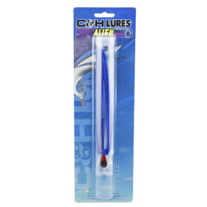 C&H, Alien Lure, Blue/White Nylon Hair Skirt, Concave Head, Hologram Eye, 7.5 in / 19.0 cm