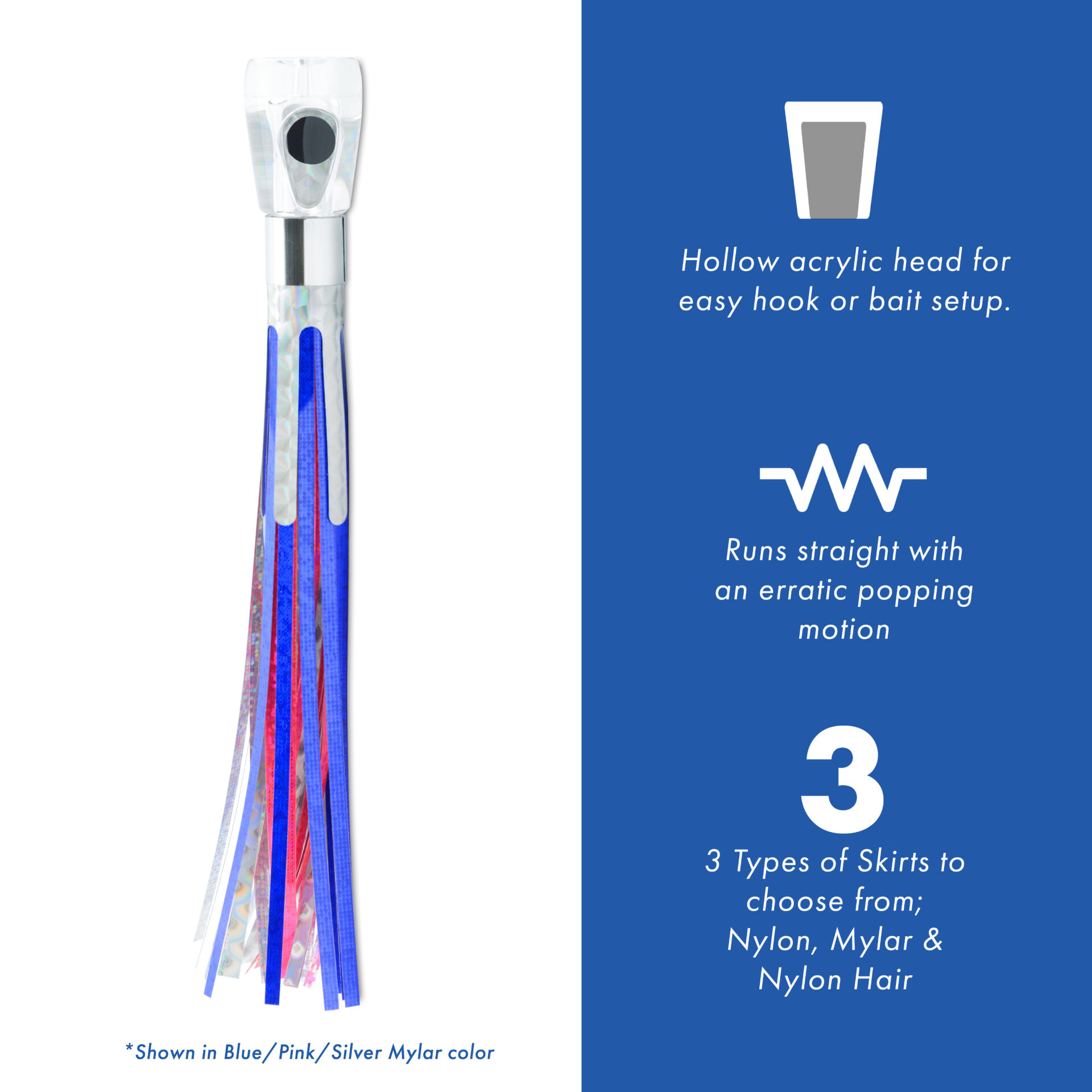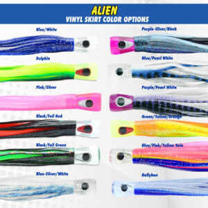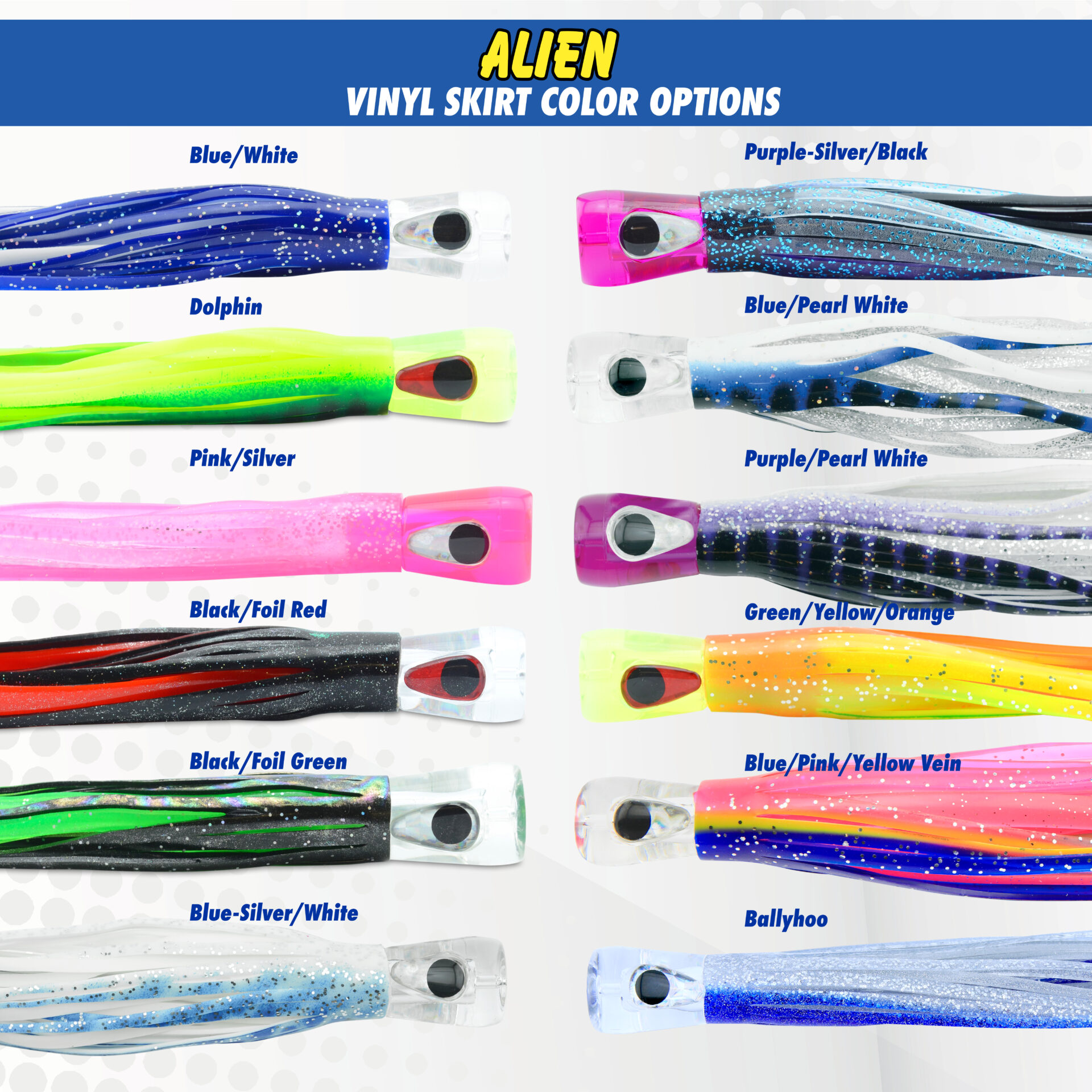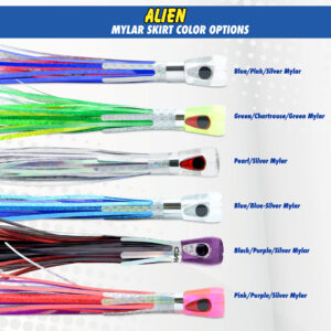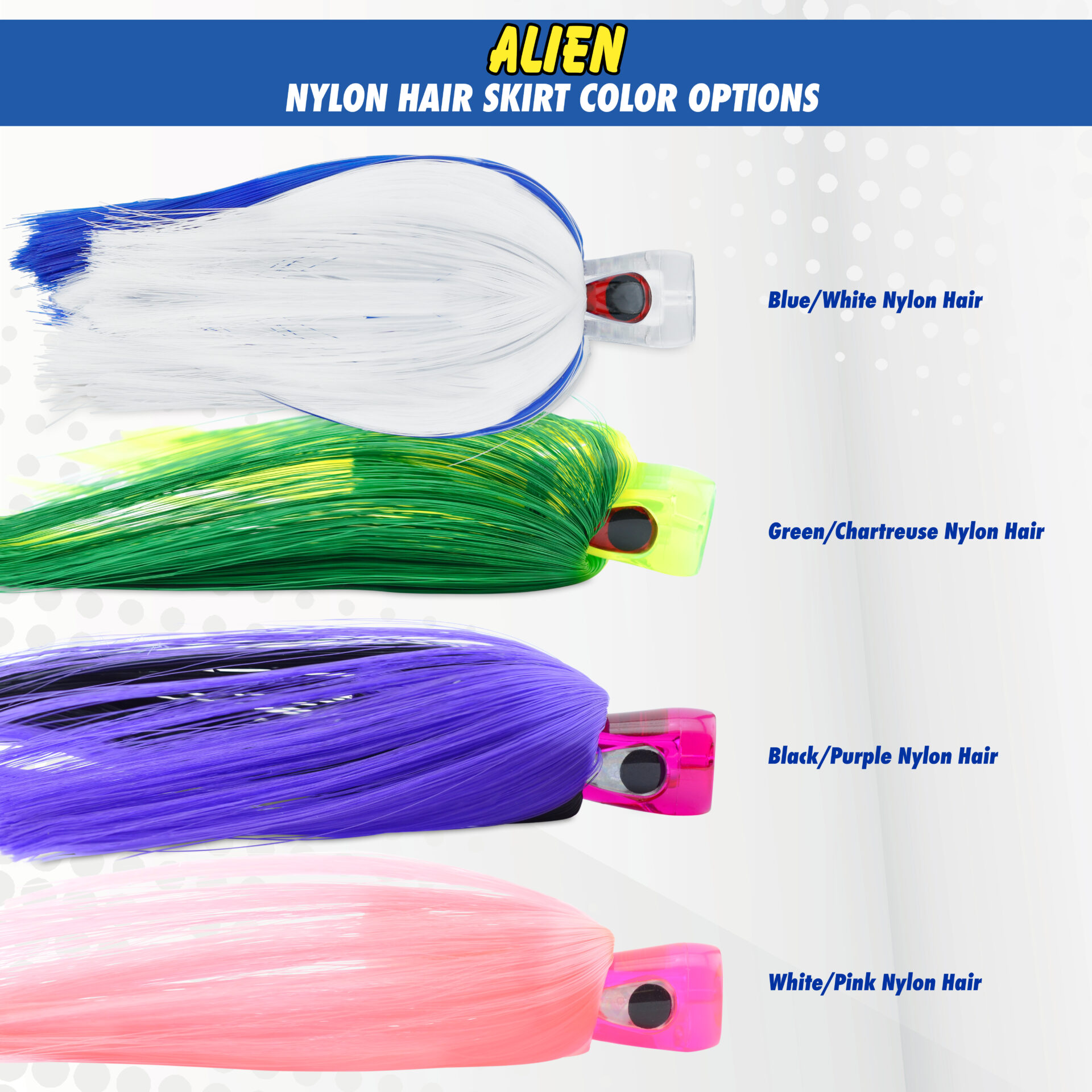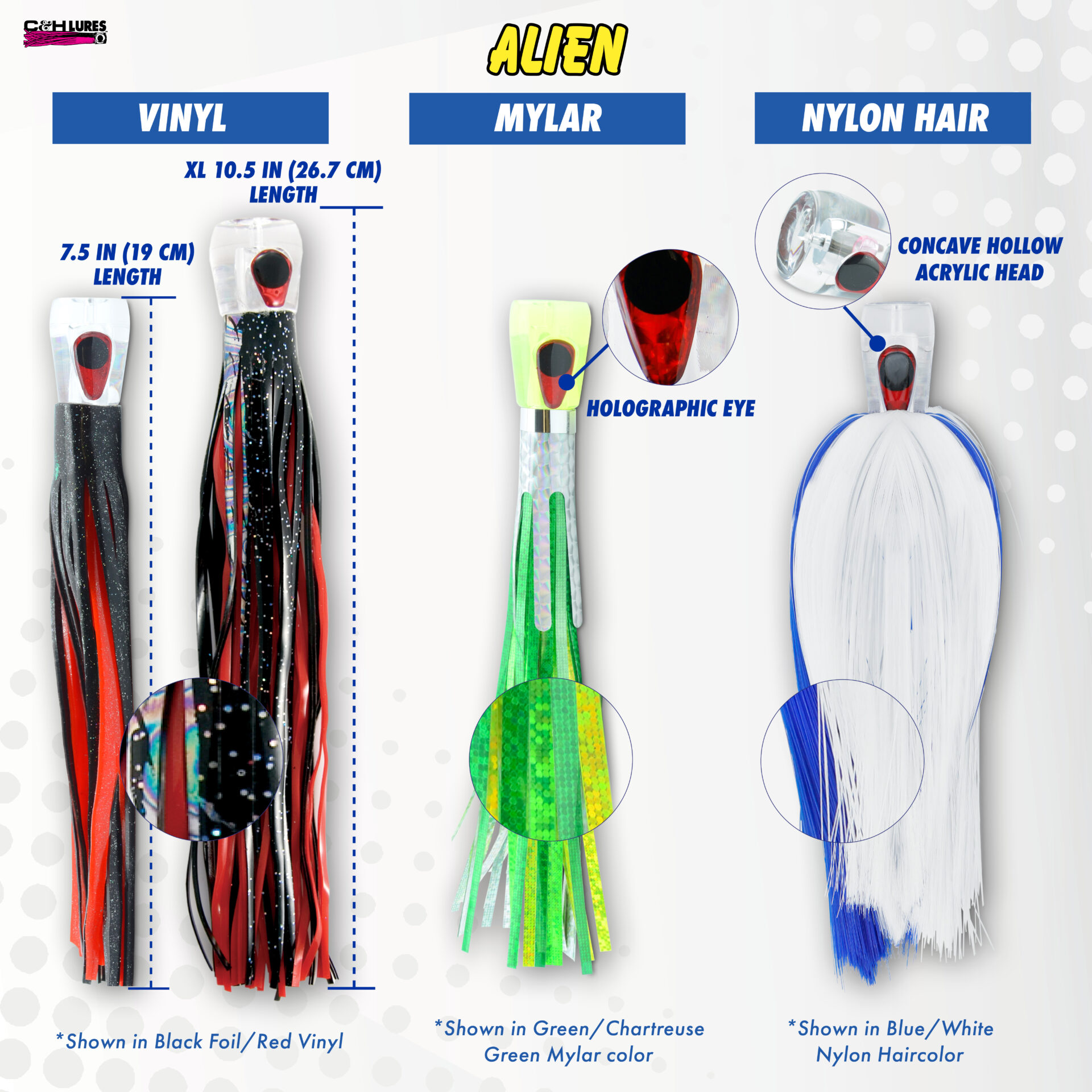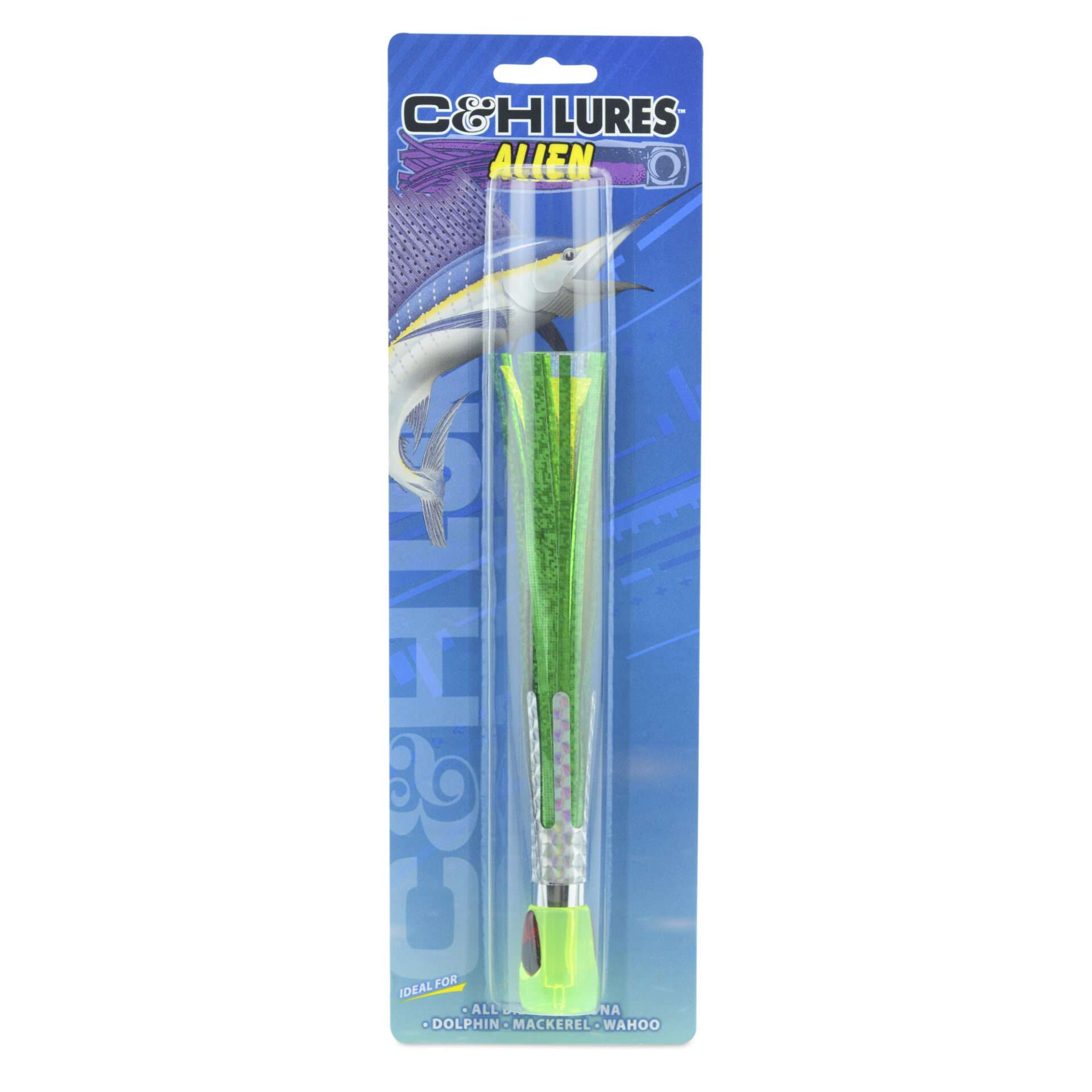 C&H, Alien Lure, Green/Chartreus/Green Mylar Skirt, Concave Head, Hologram Eye, 7.5 in / 19.0 cm