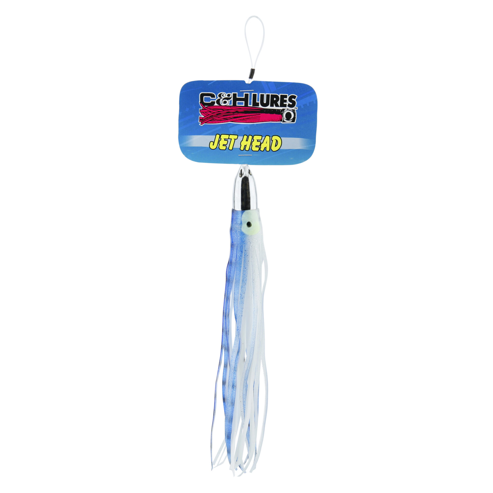 C&H, Jet Head Lure, Blue/Silver/White Skirt, 5 oz / 141 g Chrome Head, 10.5 in / 26.6 cm