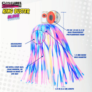 C&H, Alien Lure, Blue-Silver/White Vinyl Skirt, Concave Head, Hologram Eye, 7.5 in / 19.0 cm