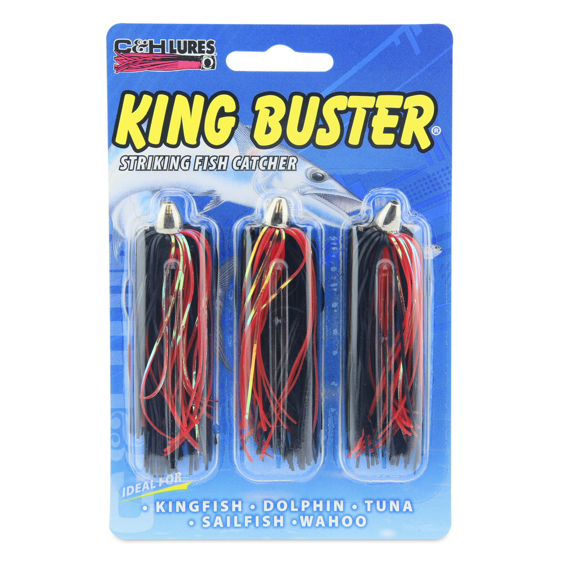 C&H, King Buster Lure, Black/Red Mylar Skirt, 1/8 oz / 3.5 g Head, 2.5 in / 6.35 cm, 3 pc