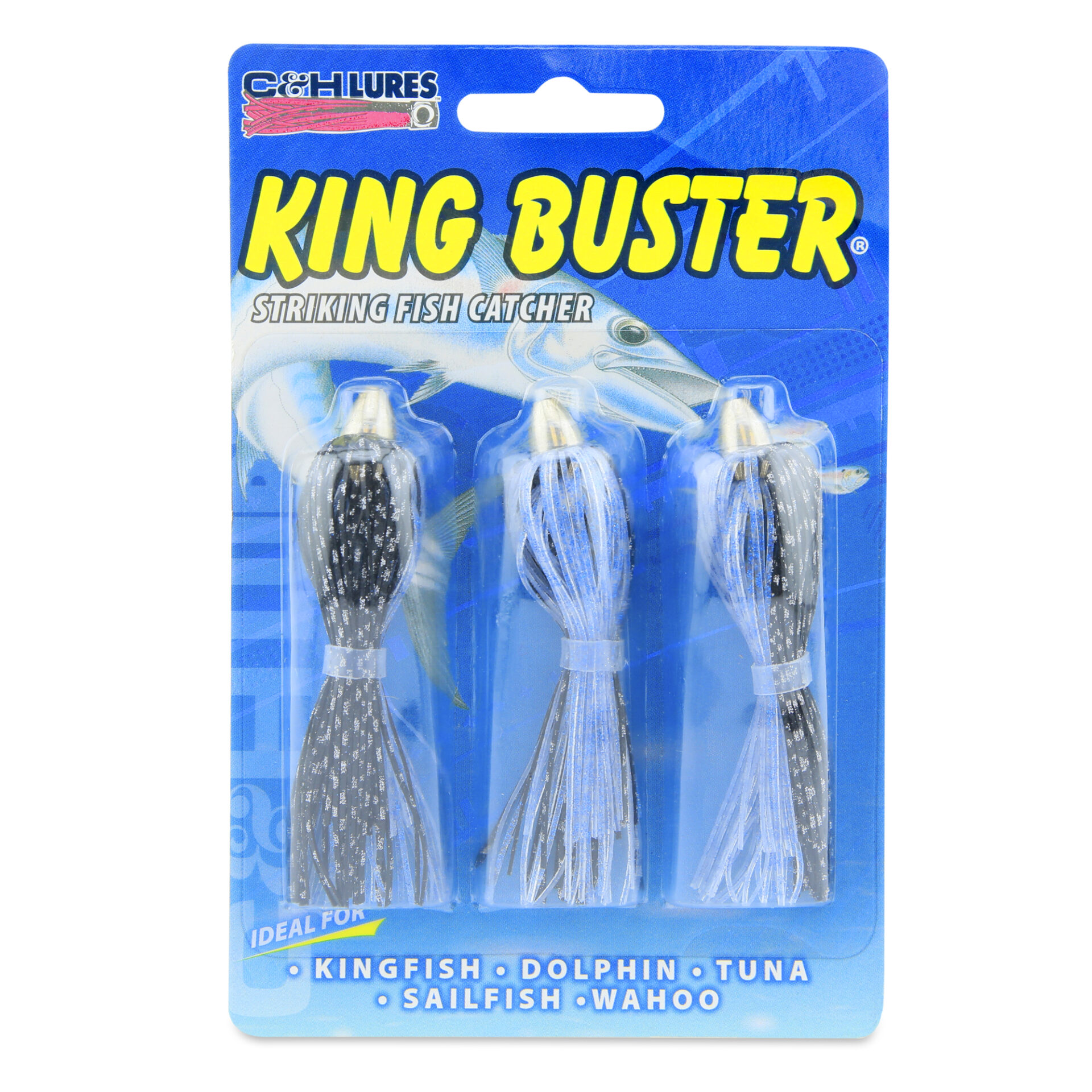 C&H, King Buster Lure, Black/Silver/SilverBlueFlck Skirt, 1/8 oz / 3.5 g Head, 2.5 in / 6.35 cm, 3 pc