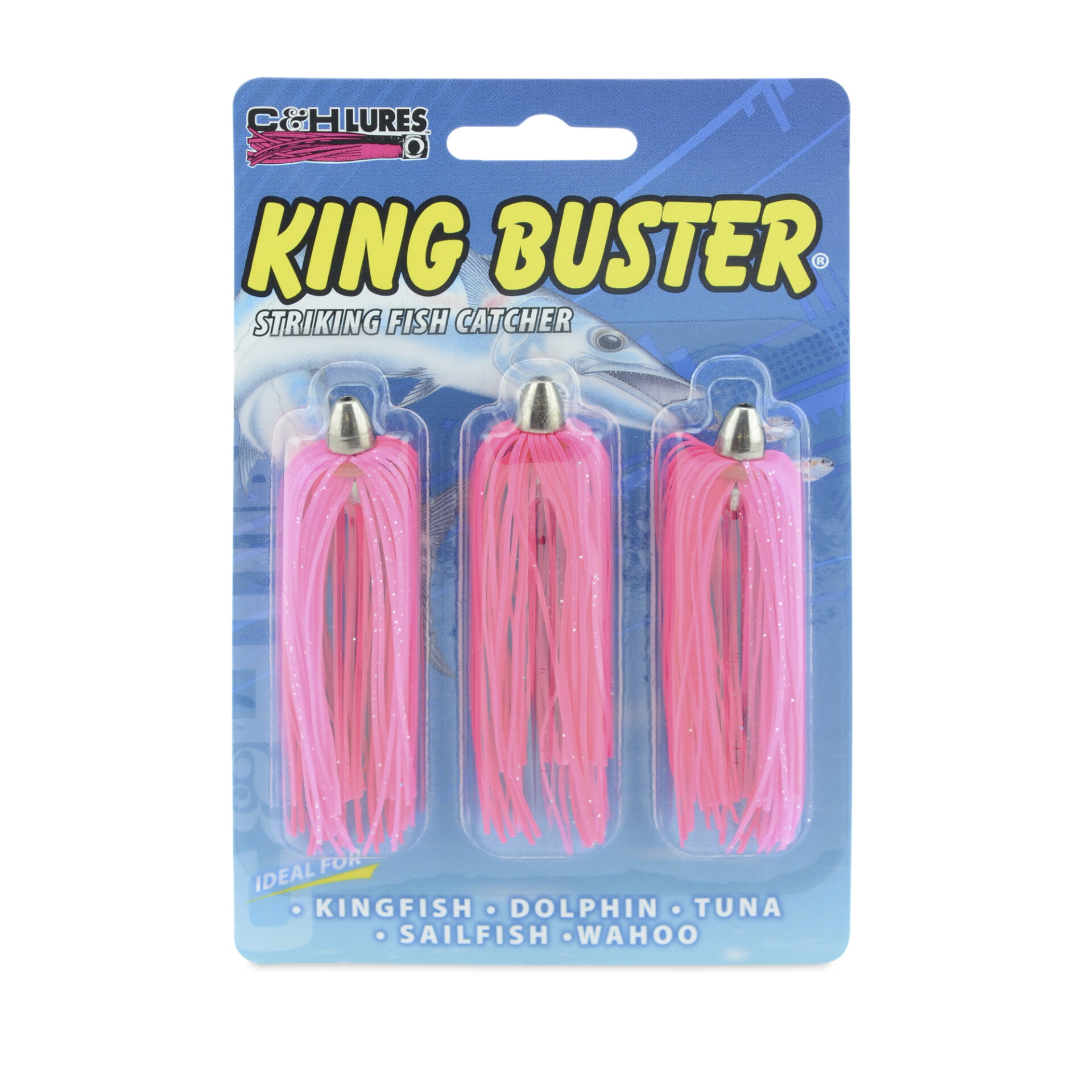 C&H, King Buster Lure, Pink/Pink Silver Fleck Skirt, 1/8 oz / 3.5 g Head, 2.5 in / 6.35 cm, 3 pc
