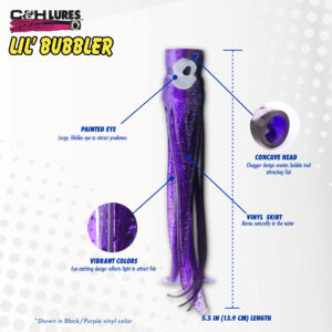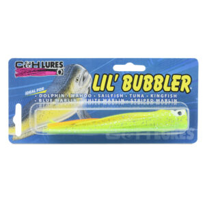 C&H, Lil Bubbler Lure, Green/Chartreuse/Orange Skirt, Concave Head, 5.5 in / 14 cm