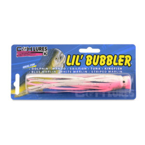 C&H, Lil Bubbler Lure, Pink/White Belly Skirt, Concave Head, 5.5 in / 14 cm