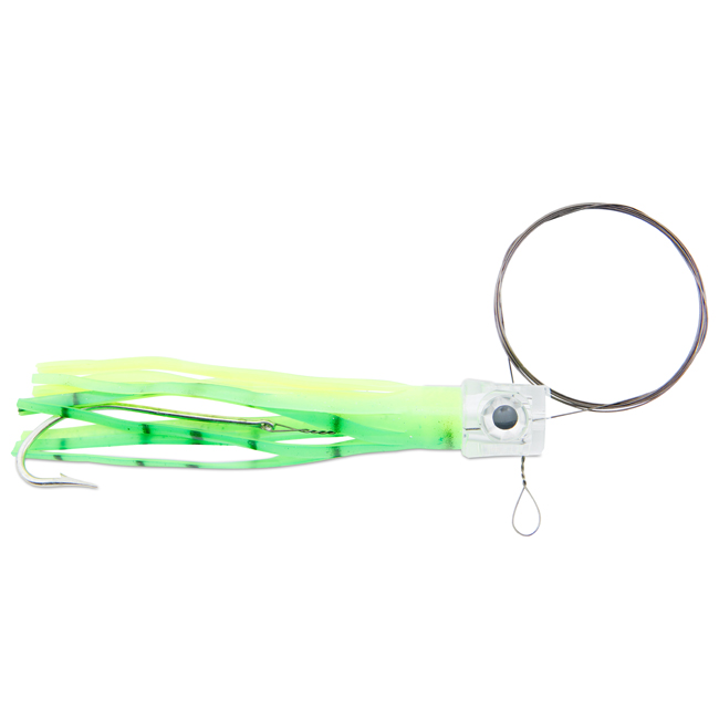 C&H, Lil Stubby Ballyhoo Rig, Dolphin/Yellow Skirt, 7/0 Mustad Hook, BaitSpring & Pin, #7 AFW Tooth Proof Leader Wire 69 lb / 31 kg Test, Camo Brown, 3 ft / 0.91 m