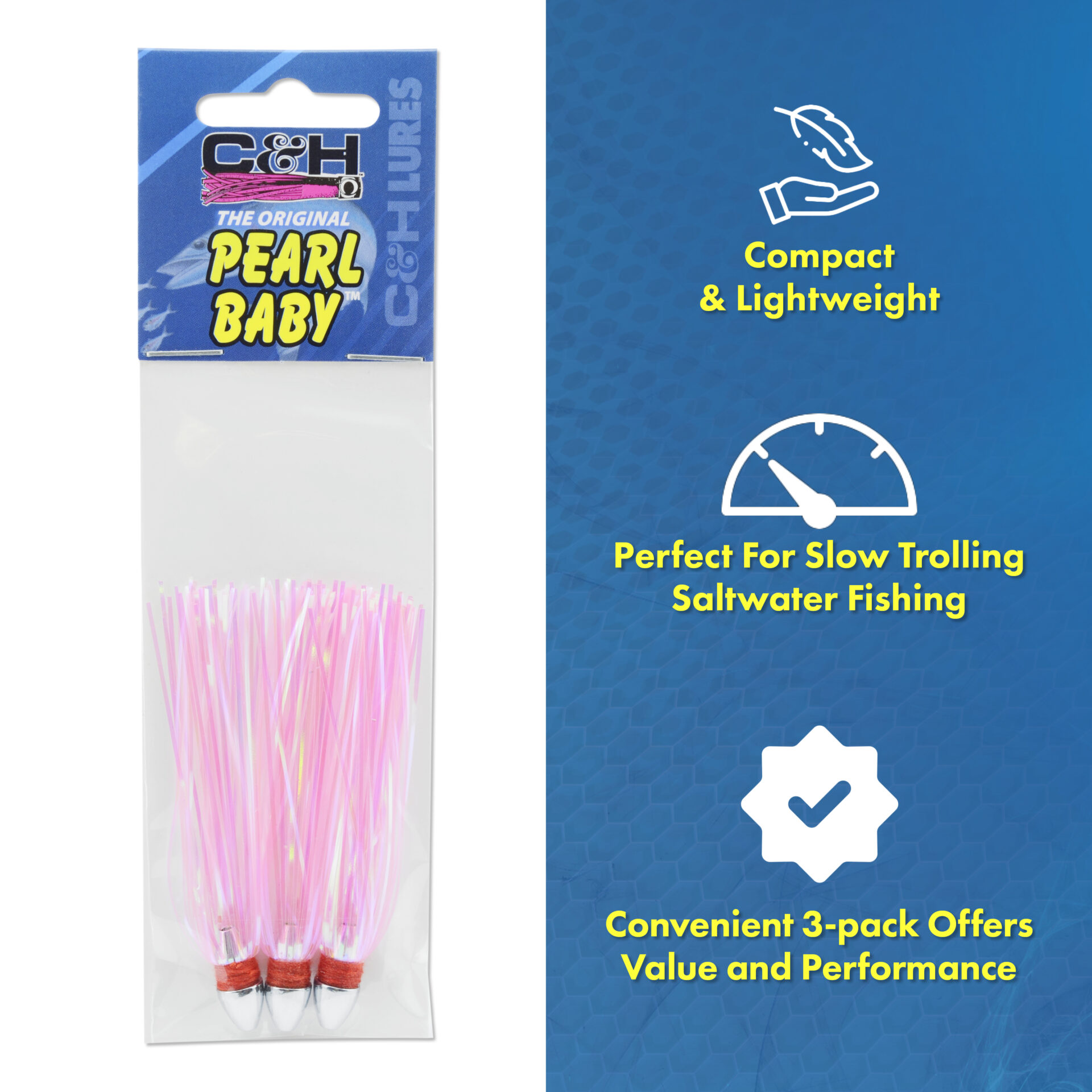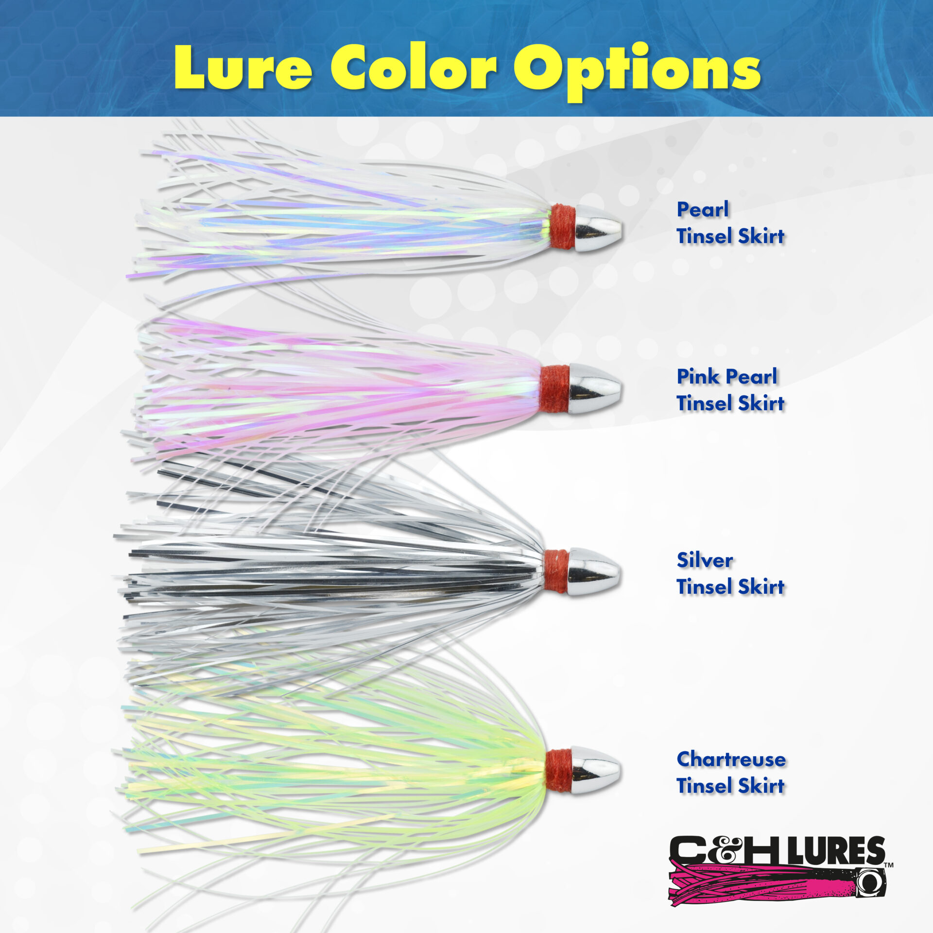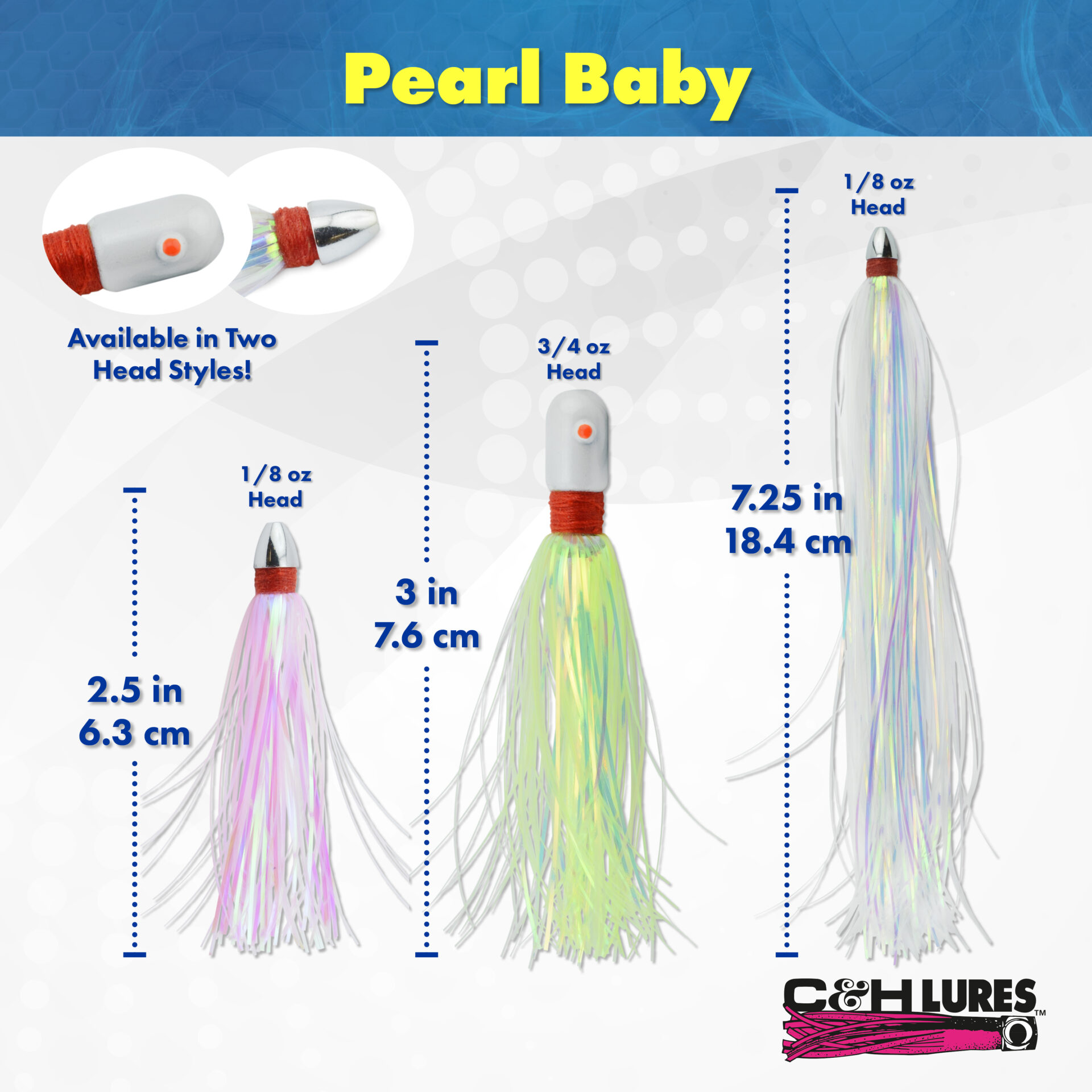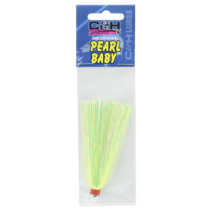 C&H, Pearl Baby Lure, Chartreuse Tinsel Skirt, 1/8 oz / 3.54 g Head, 2.5 in / 6.35 cm