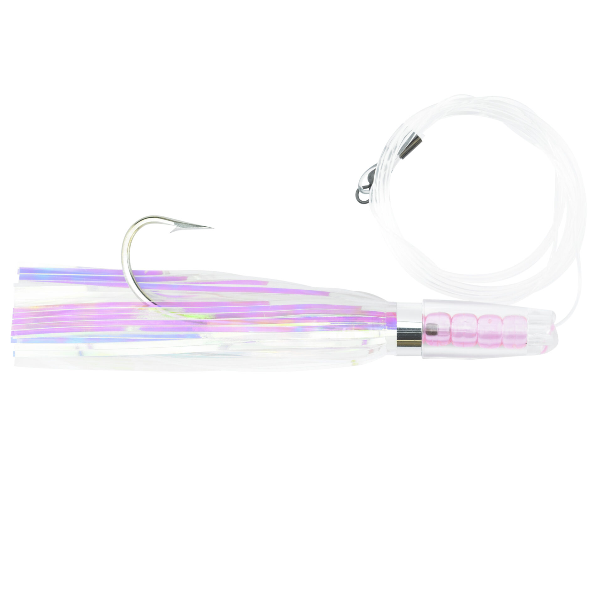 C&H, Rattle Jet Rigged & Ready, Oyster Pearl Mylar Skirt, 7/0 Mustad Hook, AFW Swivel, 100 lb / 45.3 kg Grand Slam Mono Line, 6 ft / 1.8 m