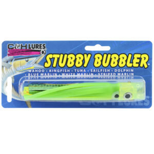 C&H, Stubby Bubbler Lure, Green/Chartreuse/Green Mylar Skirt, 5.5 in (13.9 cm)