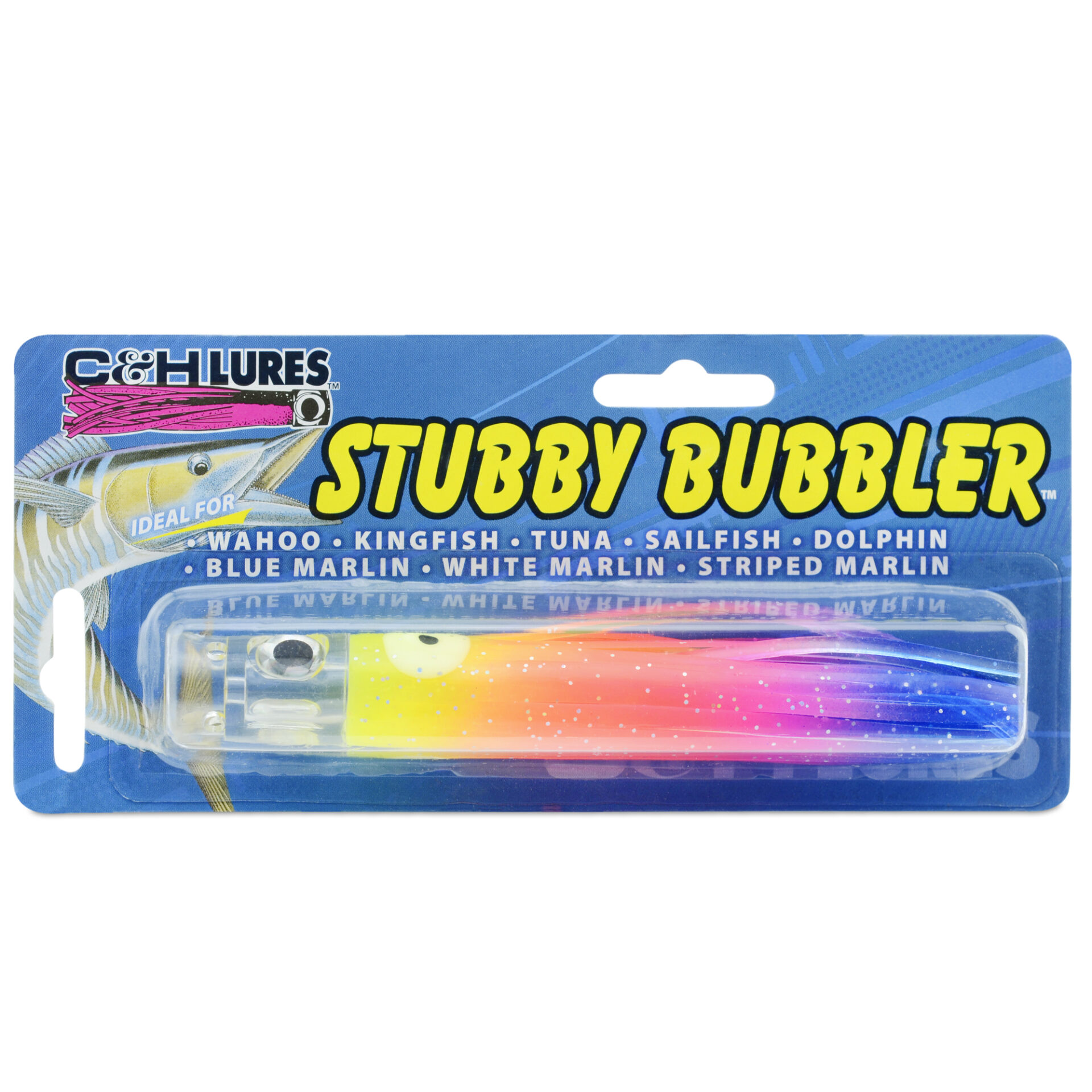 C&H, Stubby Bubbler Lure, Rainbow Skirt, 5.5 in / 13.9 cm