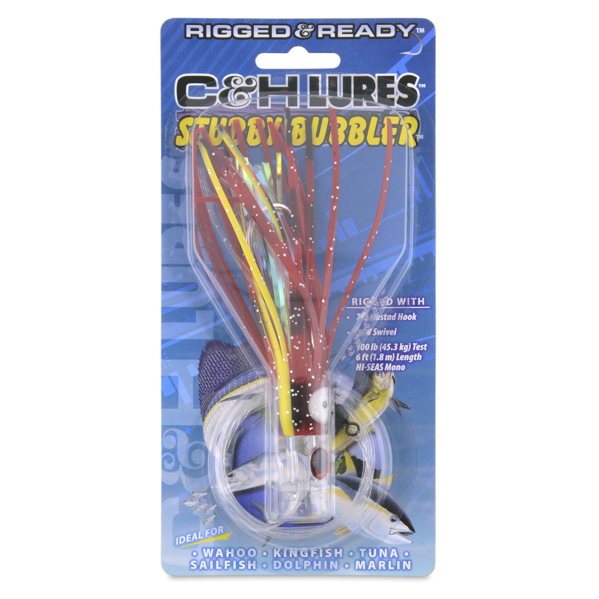 C&H, Stubby Bubbler Rigged & Ready, Black/Red/Pearl Skirt, 7/0 Mustad Hook, AFW Swivel, 100 lb / 45.3 kg Grand Slam Mono Line, 6 ft / 1.8 m