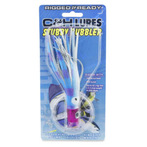 C&H, Stubby Bubbler Rigged & Ready, Purple/Pearl/Mylar Skirt, 7/0 Mustad Hook, AFW Swivel, 100 lb / 45.3 kg Grand Slam Mono Line, 6 ft / 1.8 m