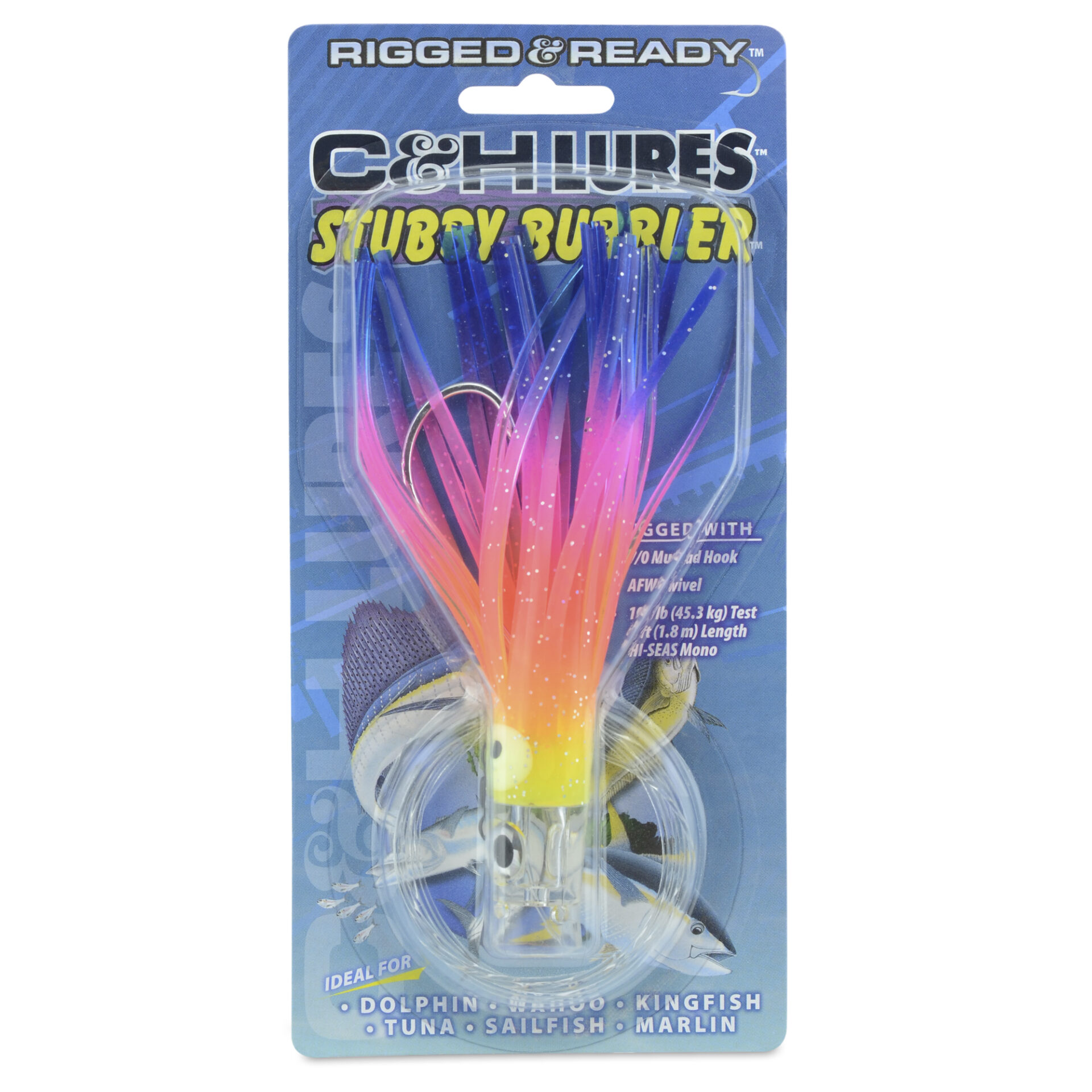 C&H, Stubby Bubbler Rigged & Ready, Rainbow Skirt, 7/0 Mustad Hook, AFW Swivel, 100 lb / 45.3 kg Grand Slam Mono Line, 6 ft / 1.8 m