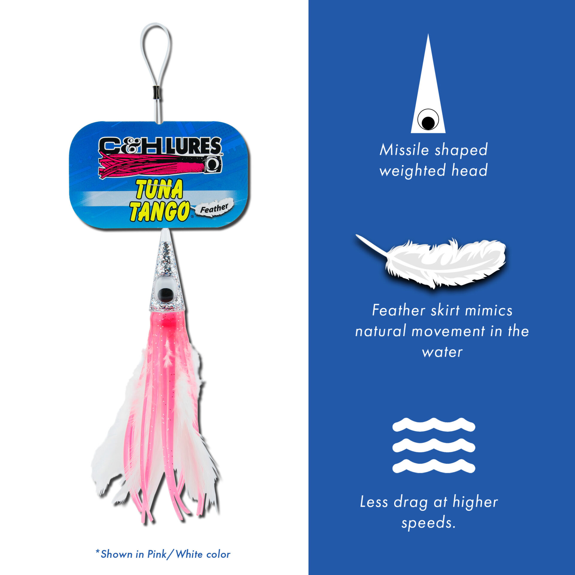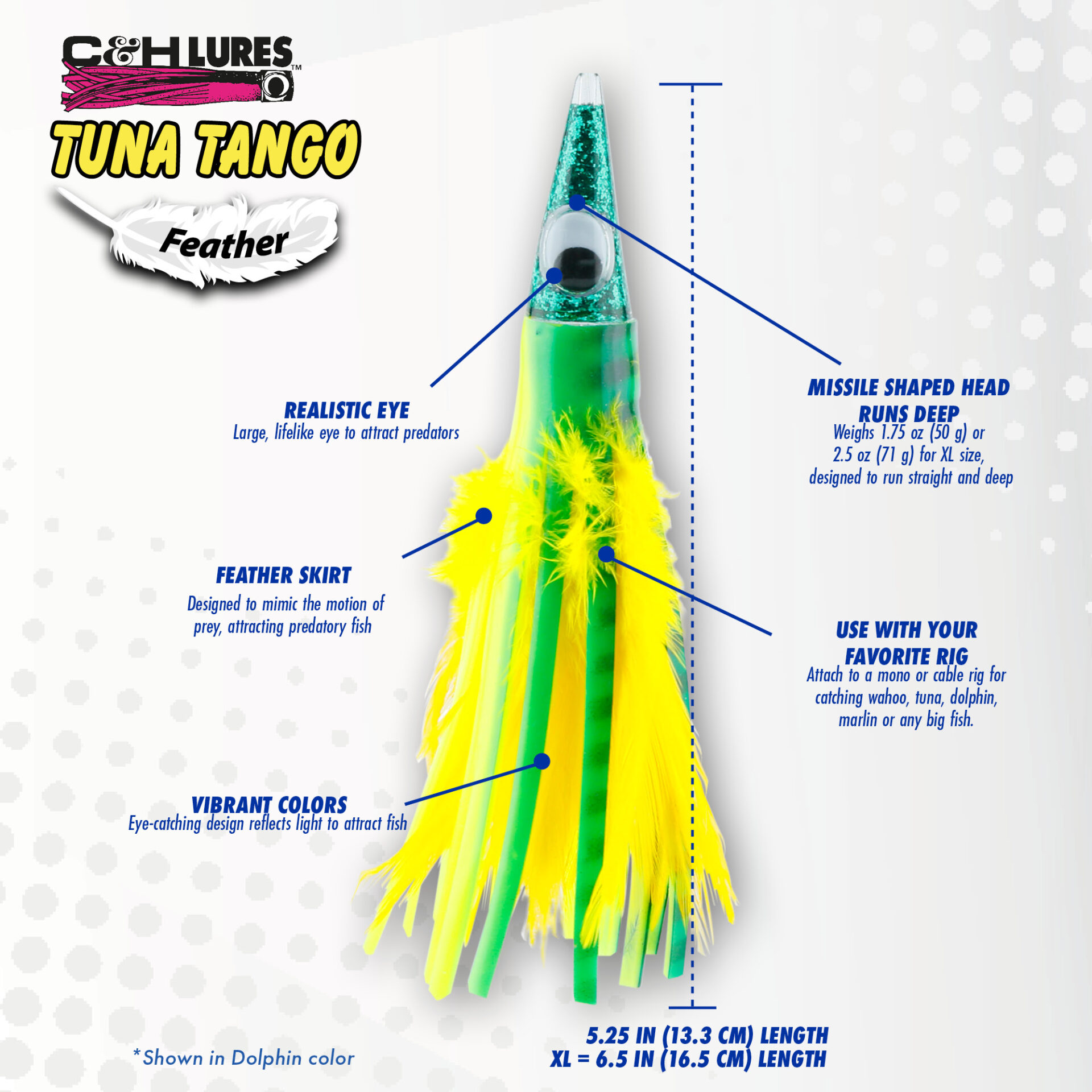 C&H, Tuna Tango Feather Lure, Black Foil/Purple Feather Skirt, 5.25 in / 13.3 cm