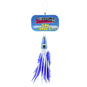 C&H, Tuna Tango XL Feather Lure, White/Blue Feather Skirt, 6.5 in / 16.5 cm