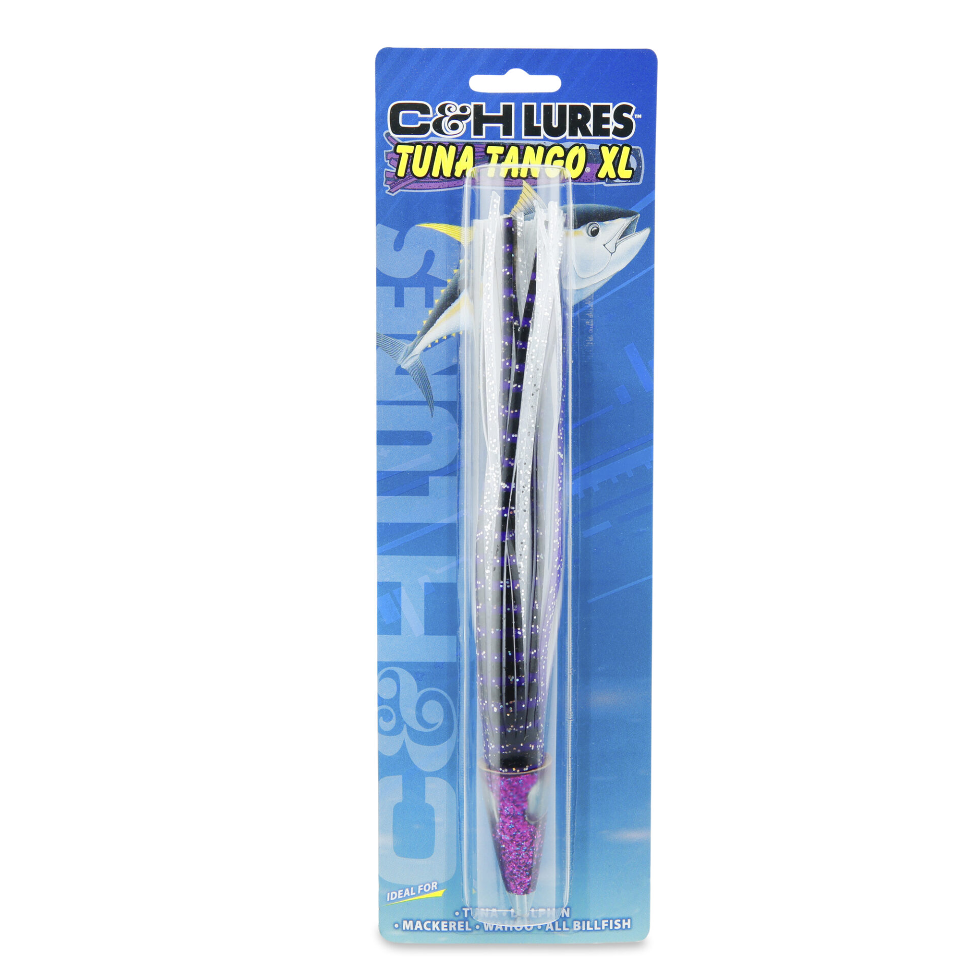 C&H, Tuna Tango XL Lure, Purple/Pearl Skirt, 2.5 oz / 70.8 g Head, 8.5 in / 21.5 cmC&H, Tuna Tango XL Lure, Purple/Pearl Skirt, 2.5 oz / 70.8 g Head, 8.5 in / 21.5 cm