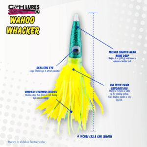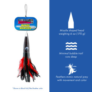 C&H, Wahoo Whacker Feather Lure, Black Foil/Purple Feather Skirt, 9 in / 22.8 cm