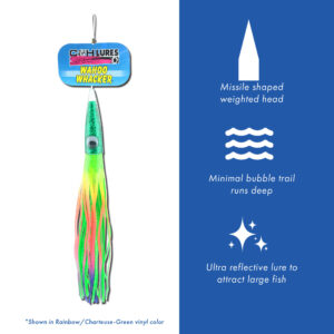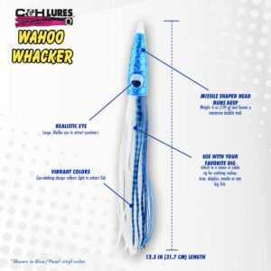 C&H, Wahoo Whacker Rigged & Ready, Black/Purple Skirt, 6 oz / 170 g 12.5 in / 31.75 cm, 10/0 Mustad 7731-DT Hook, AFW Swivel, 200 lb / 90.6 kg Grand Slam Mono, 12 ft / 3.6 m