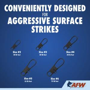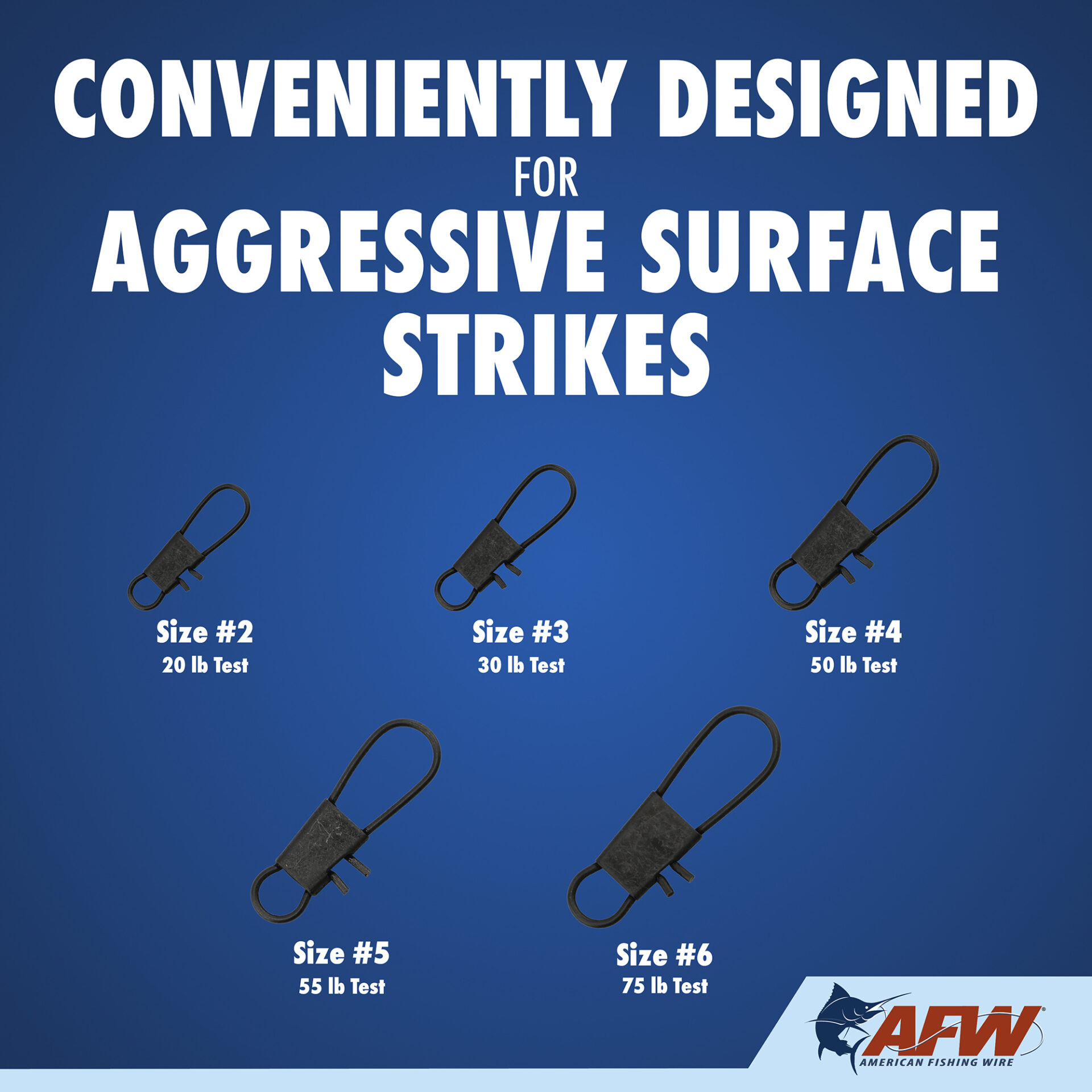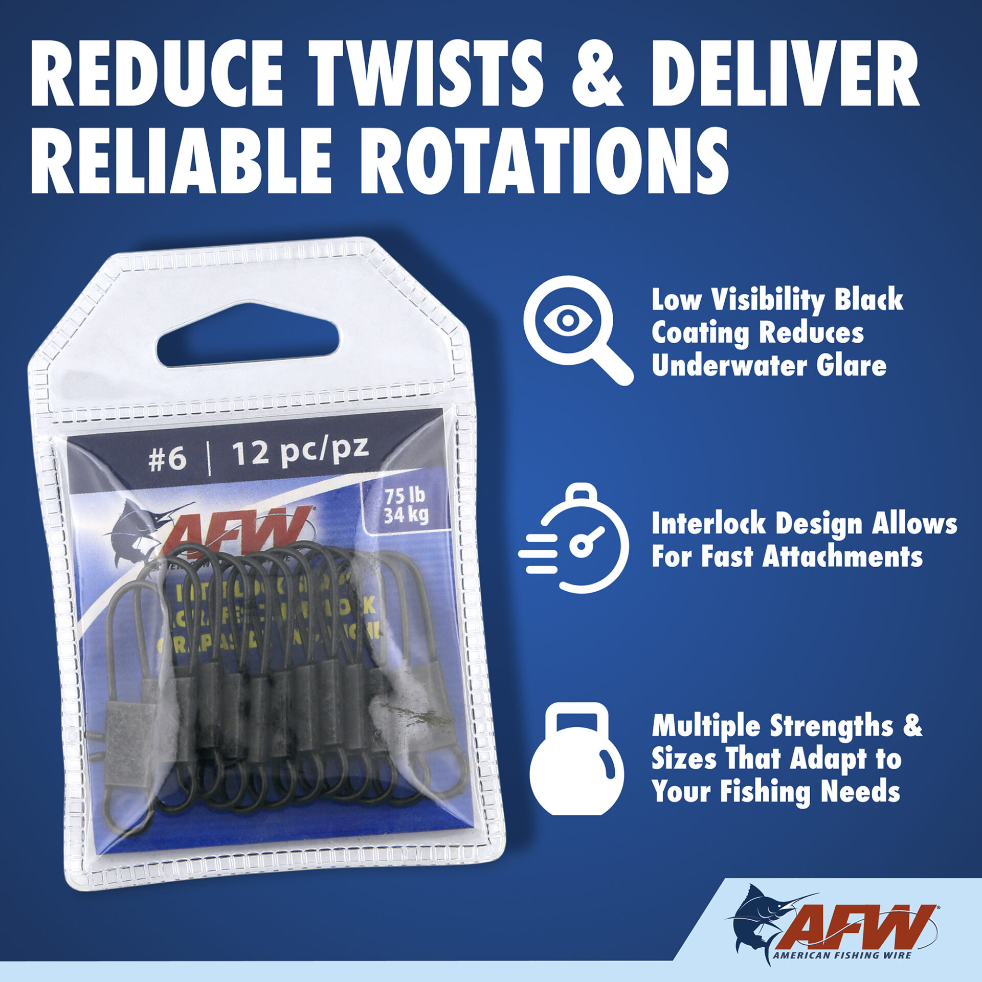 Traditional strong, sturdy Interlock Snaps resist opening under tension and break above listed values. Interlock Snaps are easy to rig and can be used on a variety of leaders. Available in Black.