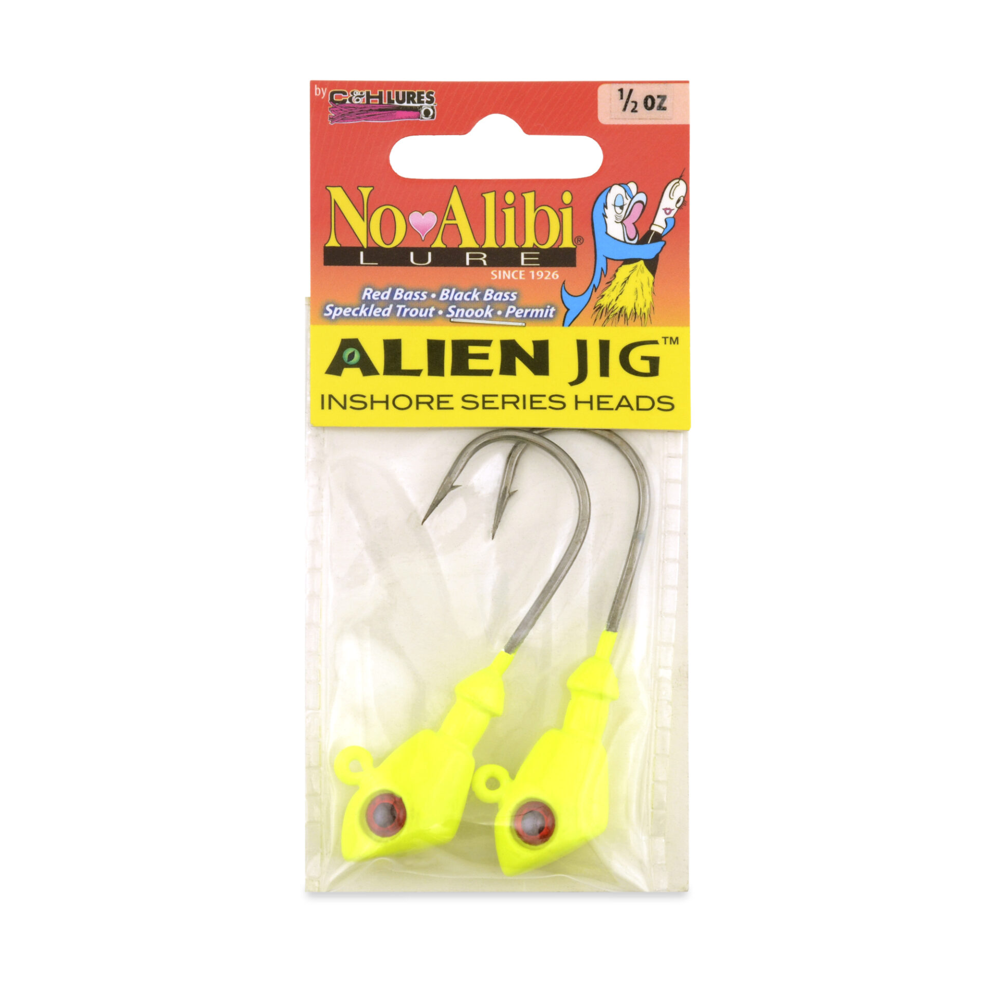 No Alibi, Alien Jig Head, Chartreuse, 1/2 oz / 14.1 g, 5/0 Hook, 2 pc