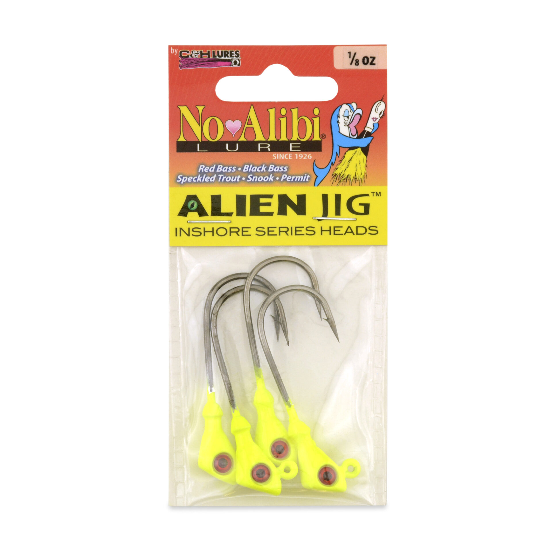 No Alibi, Alien Jig Head, Chartreuse, 1/8 oz / 3.54 g, 4/0 Hook, 4 pcNo Alibi, Alien Jig Head, Chartreuse, 1/8 oz / 3.54 g, 4/0 Hook, 4 pc
