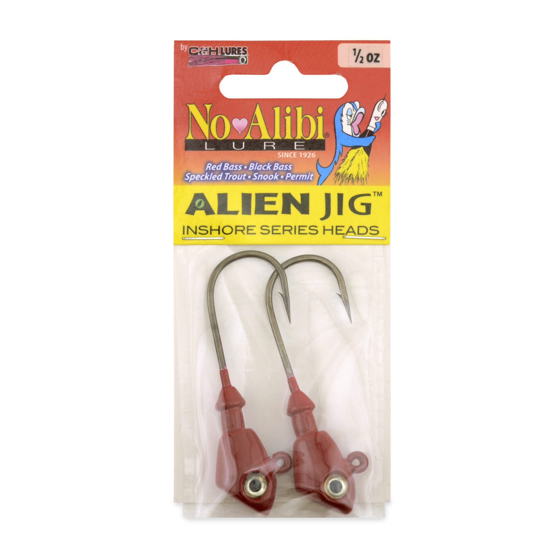 No Alibi, Alien Jig Head, Red, 1/2 oz / 14.1 g, 5/0 Hook, 2 pc