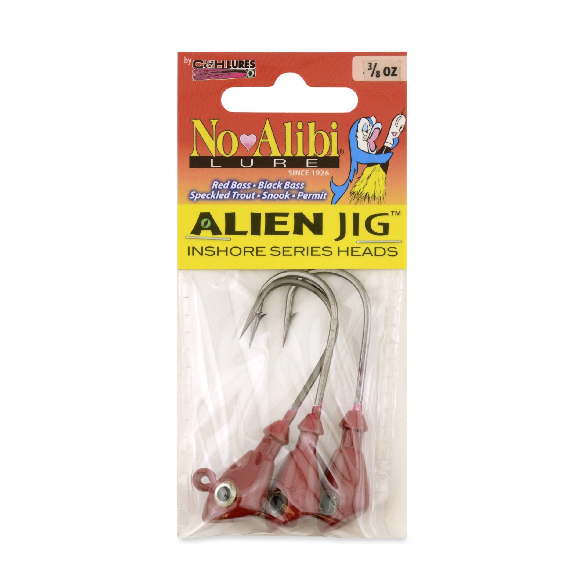 No Alibi, Alien Jig Head, Red, 3/8 oz / 10.6 g, 5/0 Hook, 3 pc