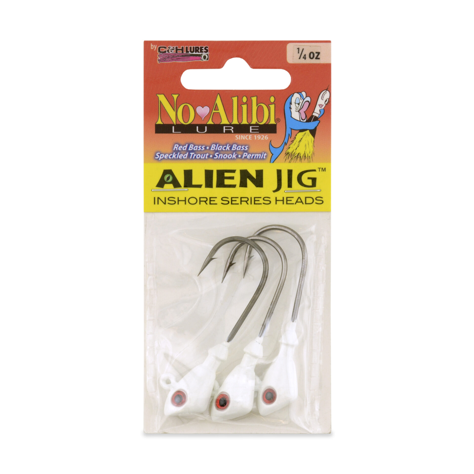 No Alibi, Alien Jig Head, White, 1/4 oz / 7.08 g, 4/0 Hook, 3 pc
