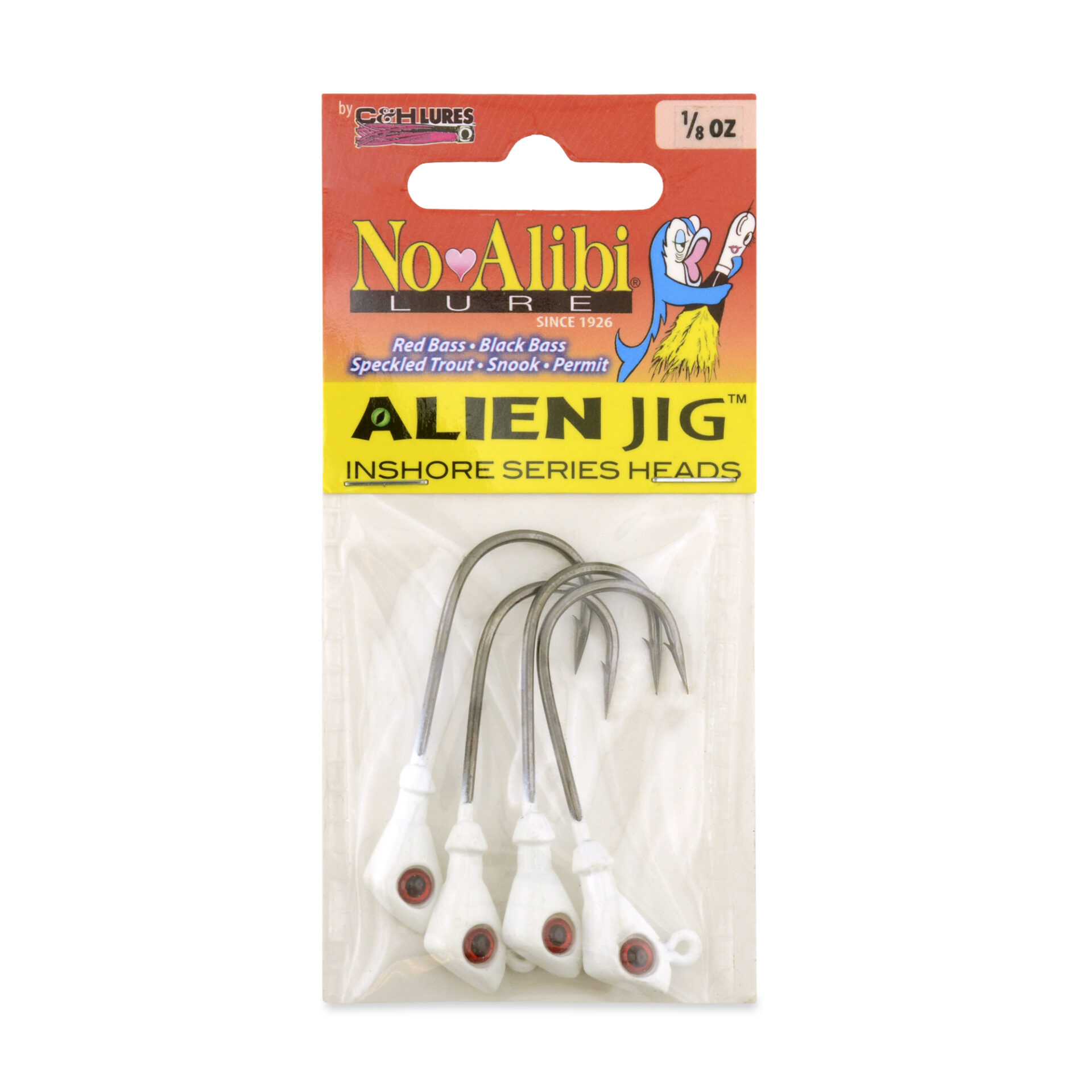 No Alibi, Alien Jig Head, White, 1/8 oz / 3.54 g, 4/0 Hook, 4 pcNo Alibi, Alien Jig Head, White, 1/8 oz / 3.54 g, 4/0 Hook, 4 pc