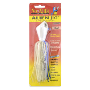 No Alibi, Alien Jig Offshore Series, Glow Blue/White Skirt, 8 oz / 226 g White/Blue Head, 7/0 Hooks (2)