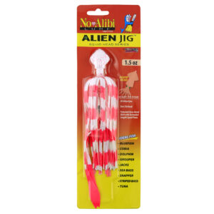 No Alibi, Alien Jig – Squid Head, 1.5 oz / 42.5 g, White/Pink Speckle Head, Glow White/Pink Skirt, Pink Squid Paws, 7/0 Hook