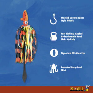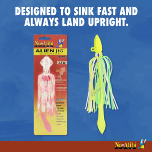 No Alibi, Alien Jig - Squid Head, 2.5 oz / 70.9 g, Pink/Blue Speckle Head, Pink/Clear/Blue Disco Skirt, Pink Squid Paws, 9/0 Hook, 8.5 in / 21.6 cmNo Alibi, Alien Jig – Squid Head, 2.5 oz / 70.9 g, Pink/Blue Speckle Head, Pink/Clear/Blue Disco Skirt, Pink Squid Paws, 9/0 Hook, 8.5 in / 21.6 cm