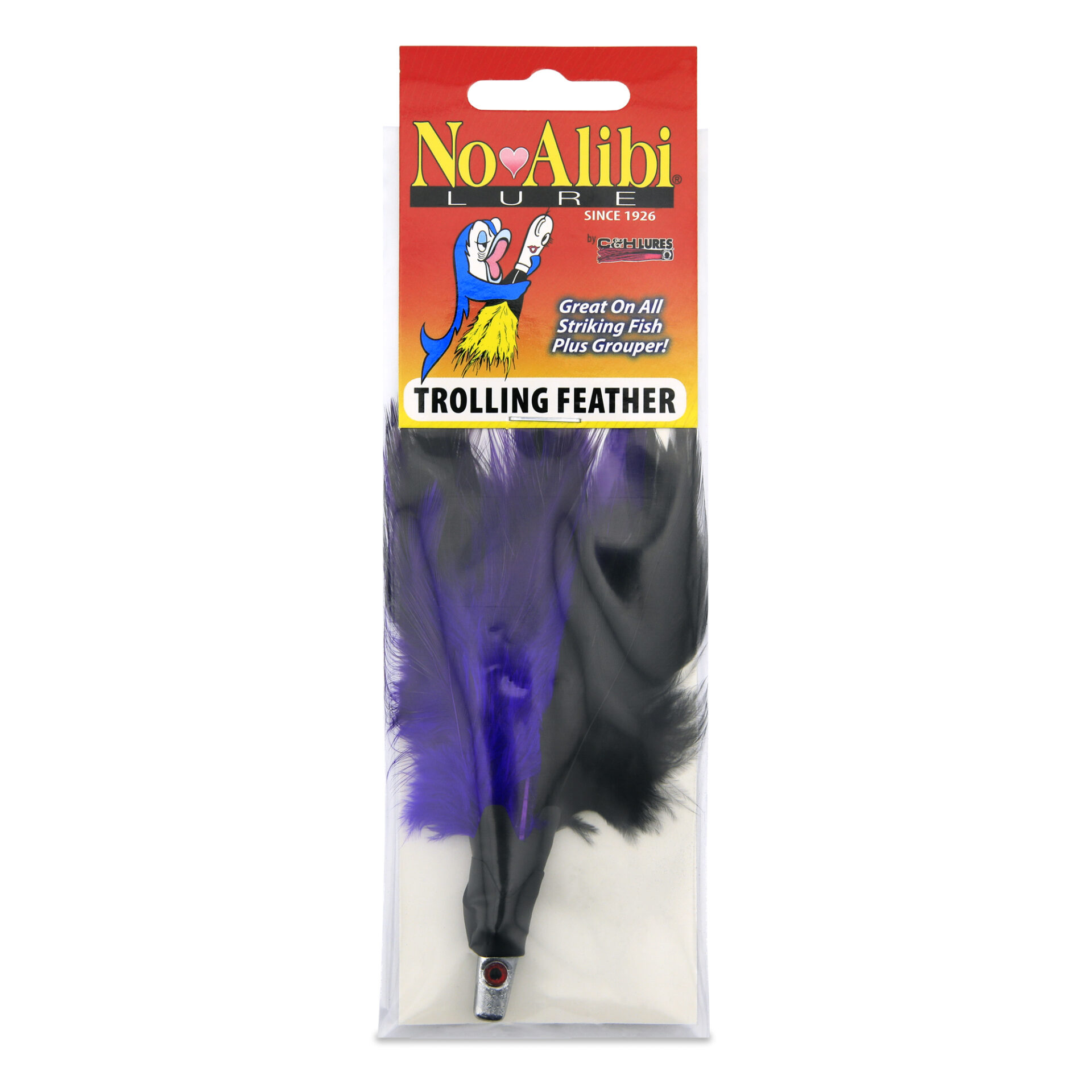 No Alibi, Trolling Feather Lure, Black/Purple Skirt, 1/4 oz / 7.08 g Head