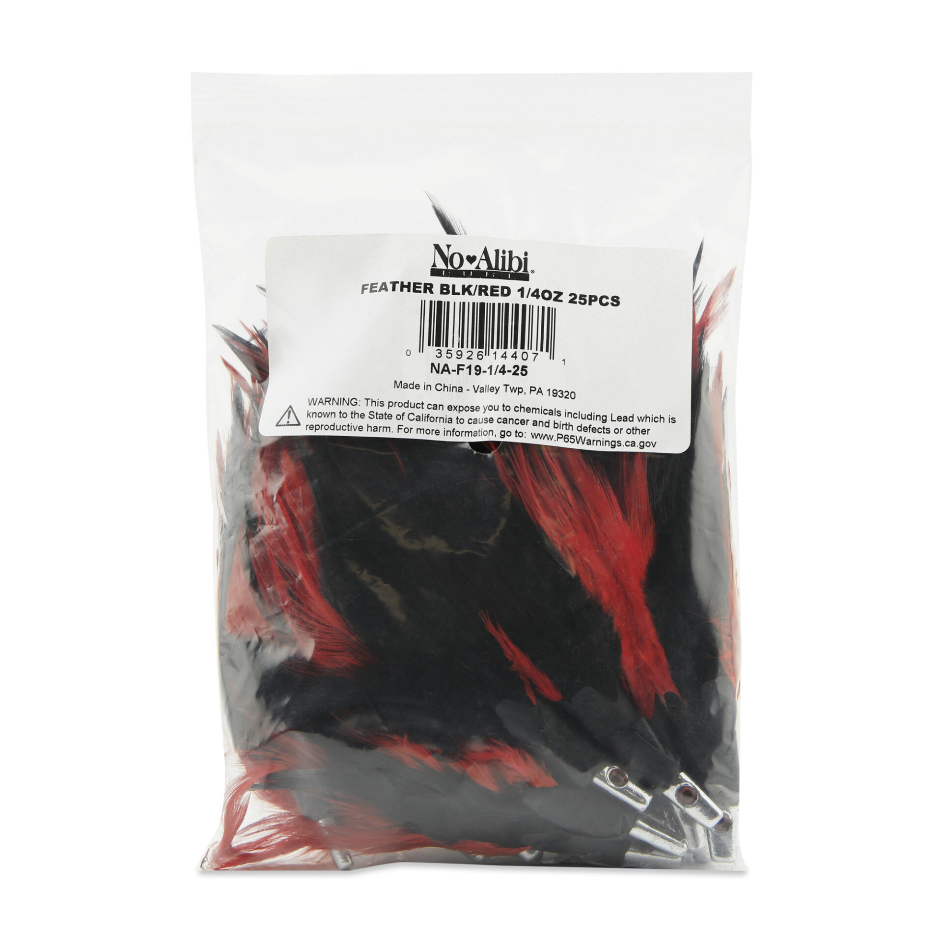 No Alibi, Trolling Feather Lure, Black/Red Skirt, 1/4 oz / 7.08 g Head, 25 pc