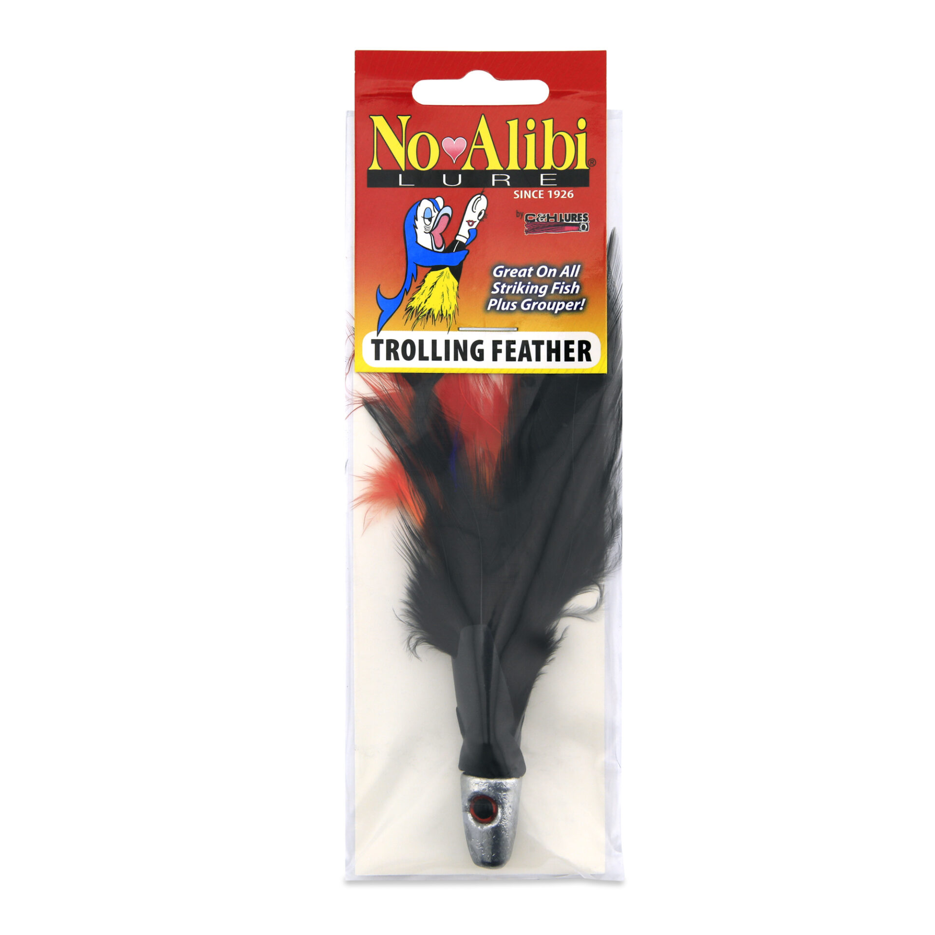 No Alibi, Trolling Feather Lure, Black/Red Skirt, 1 oz / 28.3 g Head