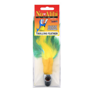 No Alibi, Trolling Feather Lure, Yellow/Green Skirt, 2 oz / 56.6 g Head