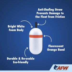 - Sits on top of the water to provide a visual reference on the position of your line.