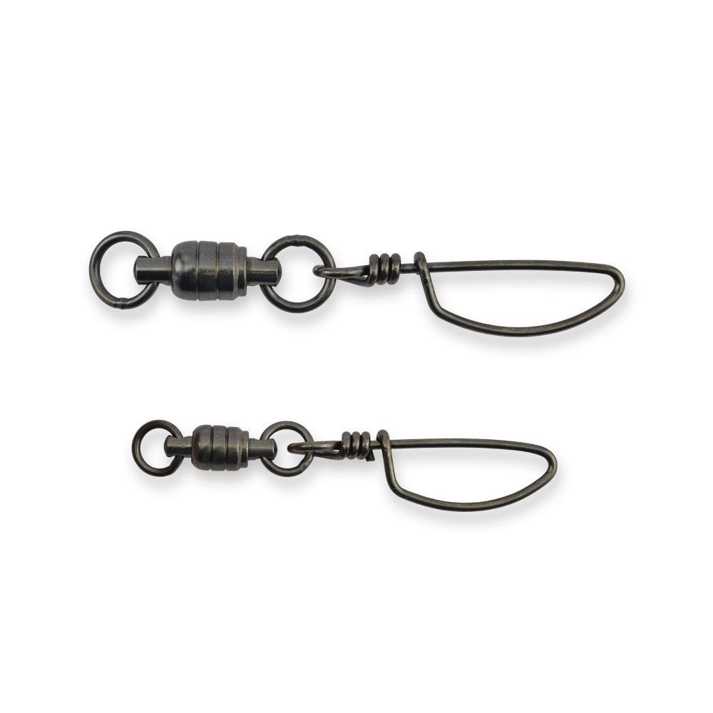 These dual-rotation solid stainless steel Ball Bearing Snap Swivels are engineered to survive the fiercest one-on-one battles. The patented bullet shape provides fluid rotation and decreased water resistance. The unique gun metal black finish minimizes reflections and cloaks the tackle. Swivels have a solid stainless steel body, stainless steel bearings, and welded rings for maximum security and to endure the unforgiving offshore environment. The tournament snaps are tempered and made of solid stainless steel, designed to stay closed and keep you connected to the fish. Patented D549,750 S.