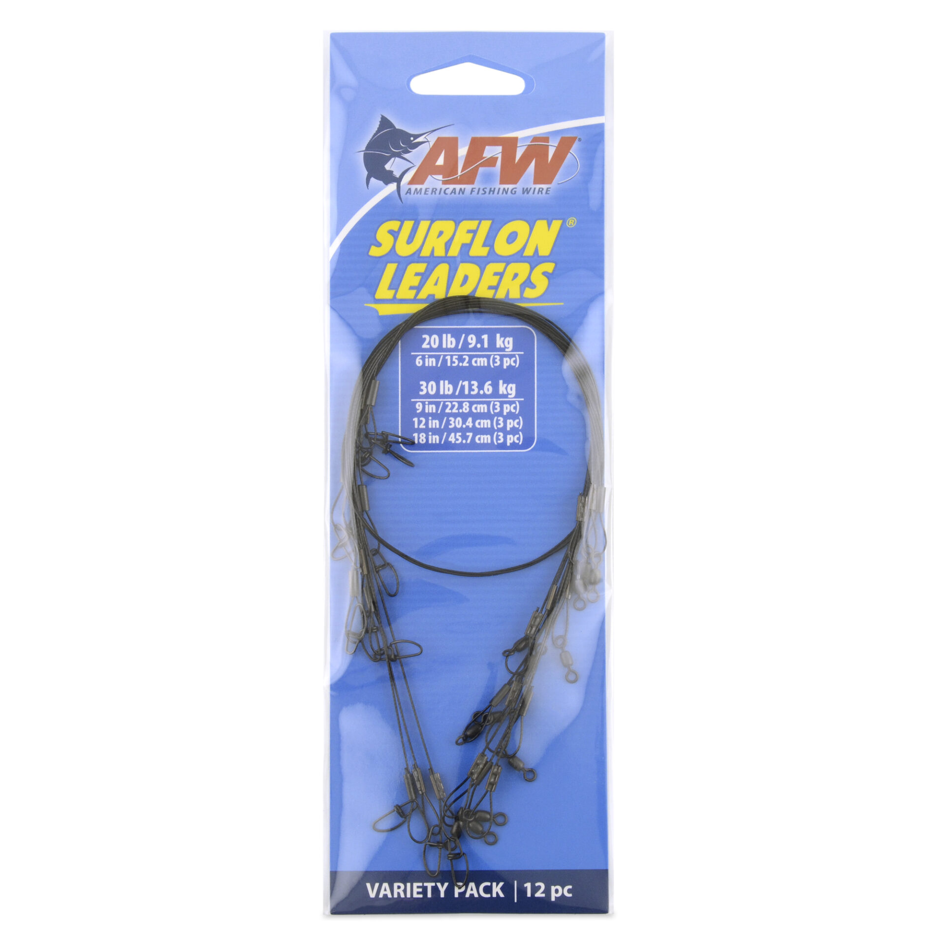 Surflon Leaders Vari Pack, Nylon Coated 1×7 Stainless Steel Wire, Sleeve, Swivel, LockSnap, 20 lb 6 in (3) | 30 lb – 9 in (3), 12 in (3), 18 in (3) | Black, 12 pc total